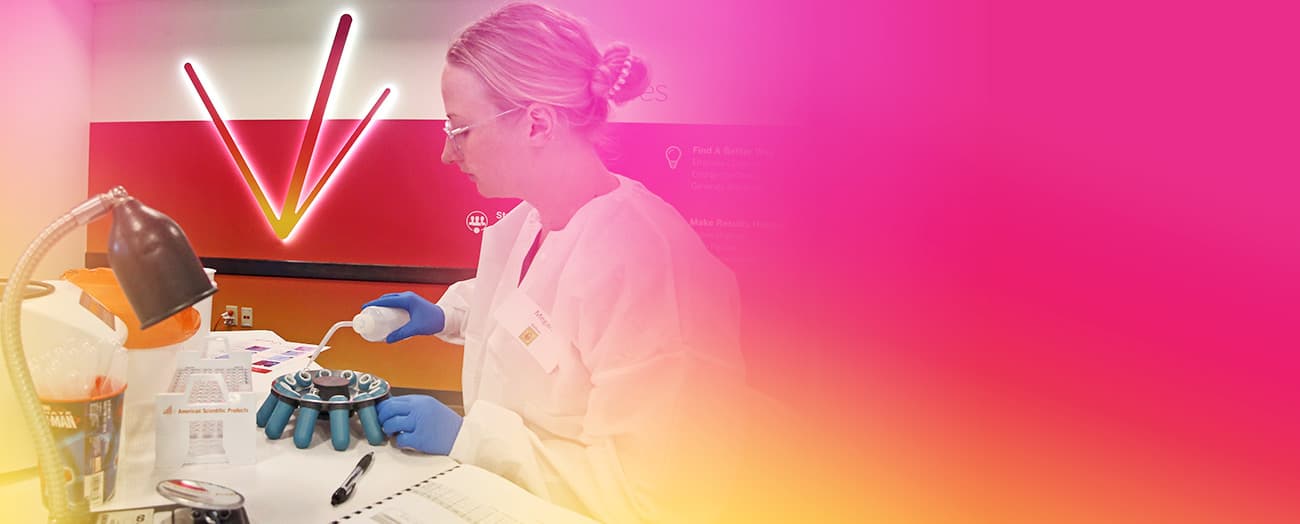 Student following Versiti instructional information while inspecting blood sample
